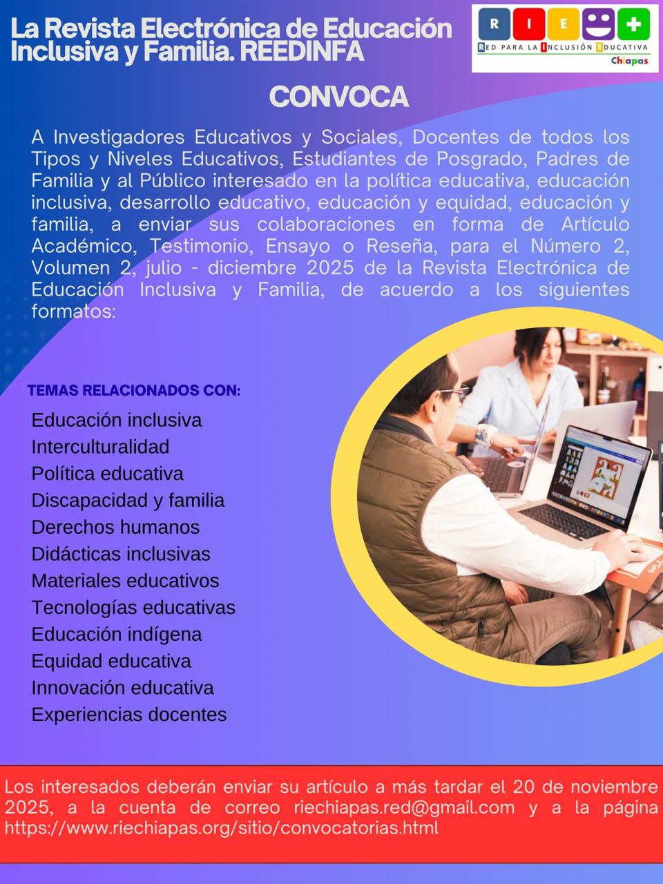 RIE Chiapas te invita a participar en su Revista Electrónica de Educación Inclusiva y Familia.